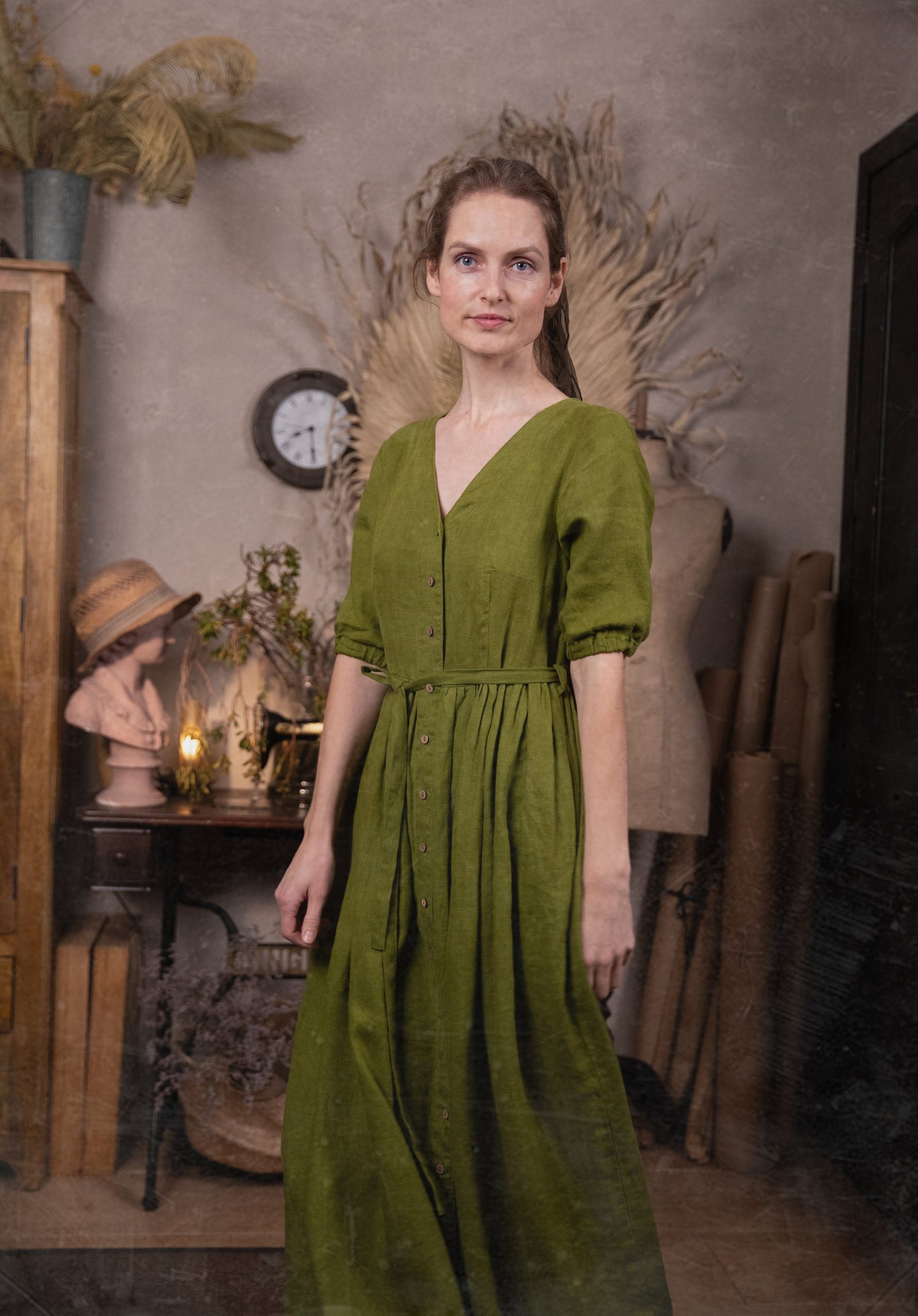 Buttoned linen dress Provence is a timeless iconic piece. Retro French style inspired dress is made of high-quality linen fabric and it is breathable, perfect for keeping cool in the summer months.