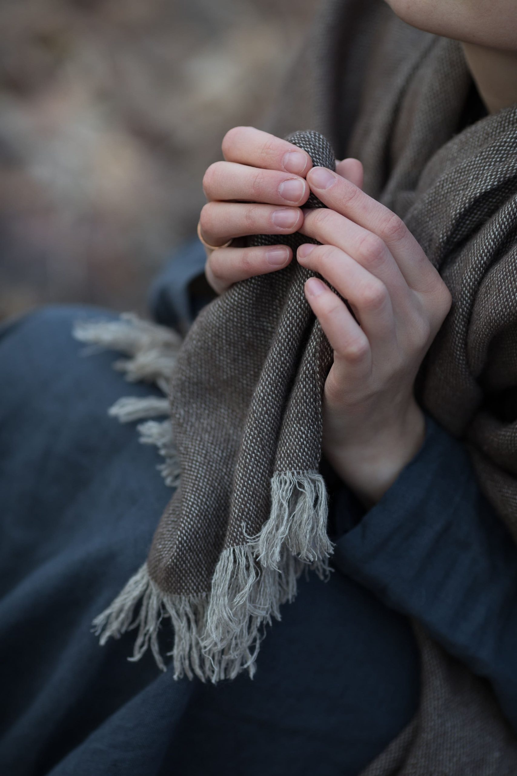 COZY linen and wool blend shawl | linen scarf | boho wool wrap | linen and wool blend stole shawl. The extra-large scarf is made by hand from beautiful linen and wool blend fabric.