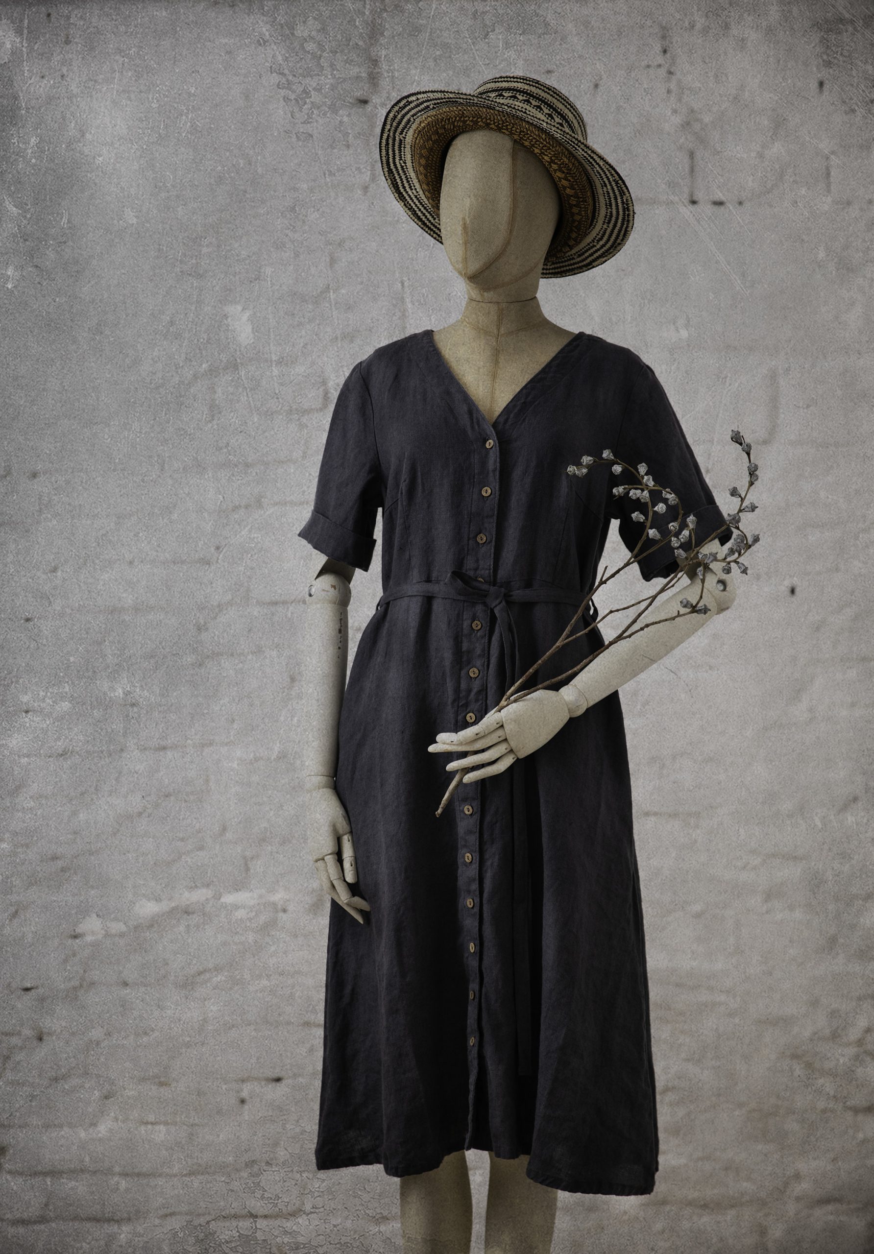 My AMELIE handmade dress in charcoal arrived this morning and I couldn't be happier with it! It's BEAUTIFUL. The fabric is so soft and strong, I like the details in the buttons and the lovely deep pockets. I gave Egle my measurements and she was so accommodating, the dress fits perfectly! I know I'll be wearing it again and again, laying up and down through different seasons. Thank you so much! ♡♡