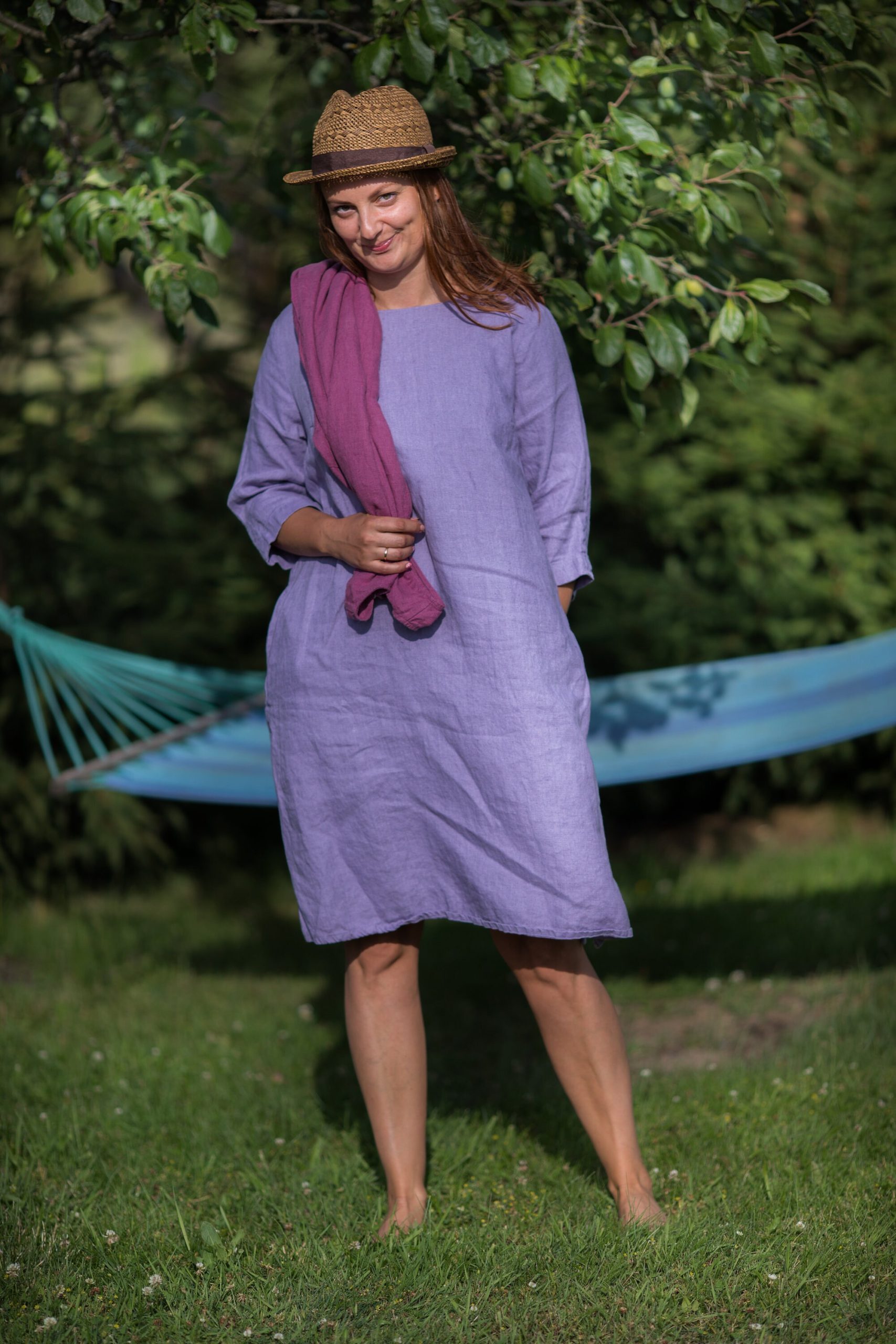 linen dress APRIL | loose fit linen dresse with side pockets and 3/4 sleeves | dress with sleeves | dress with pockets | minimal dress