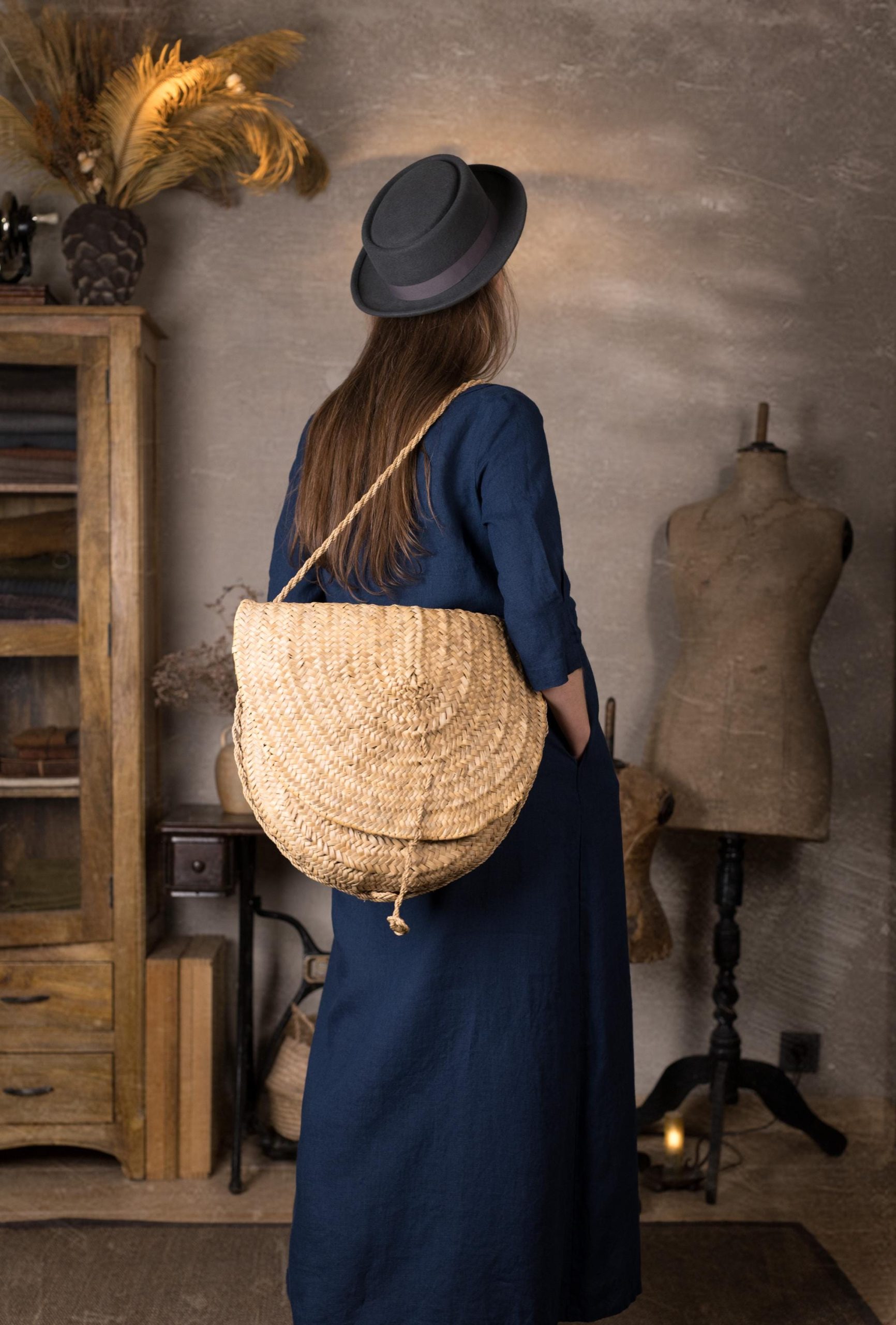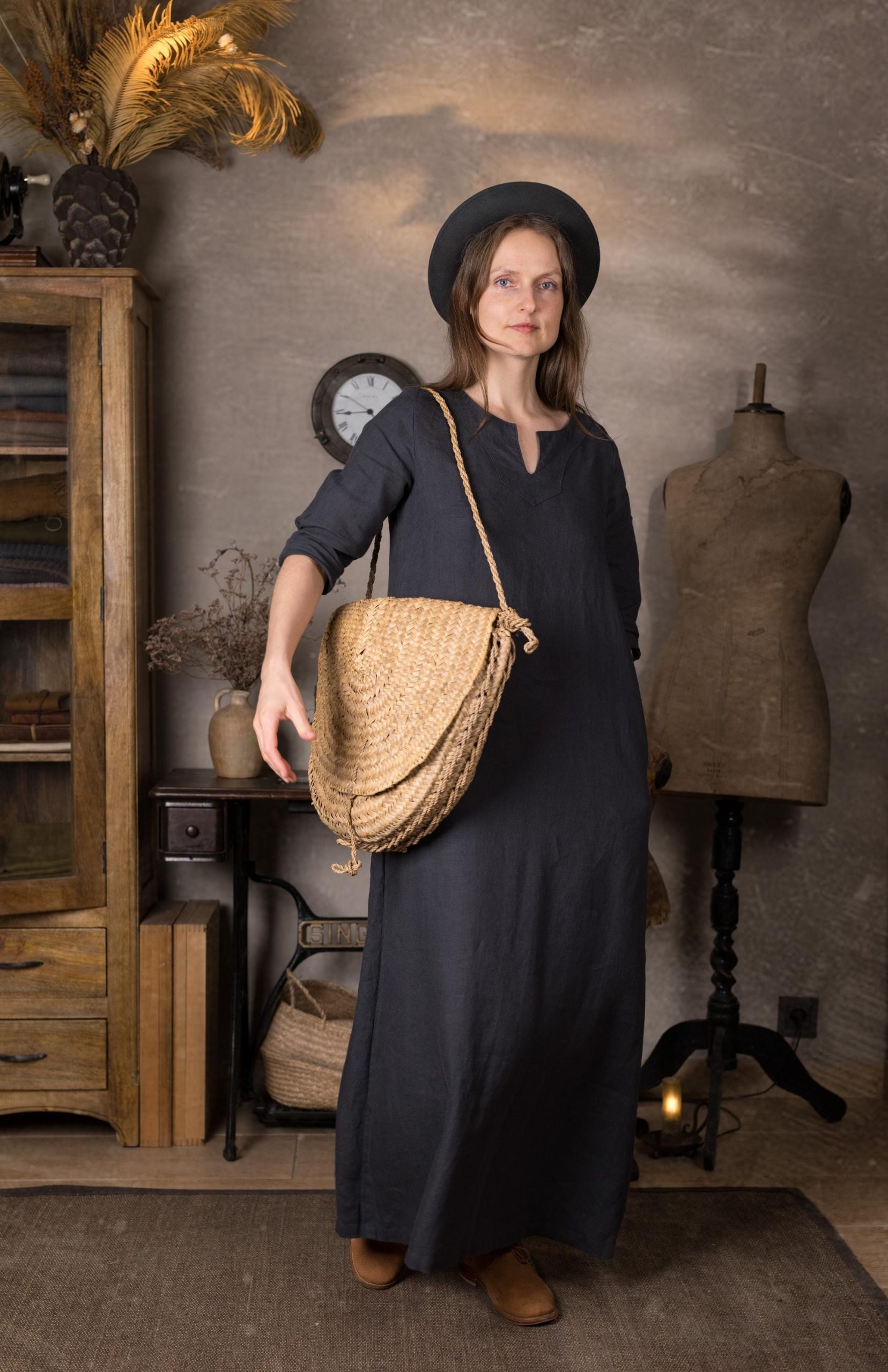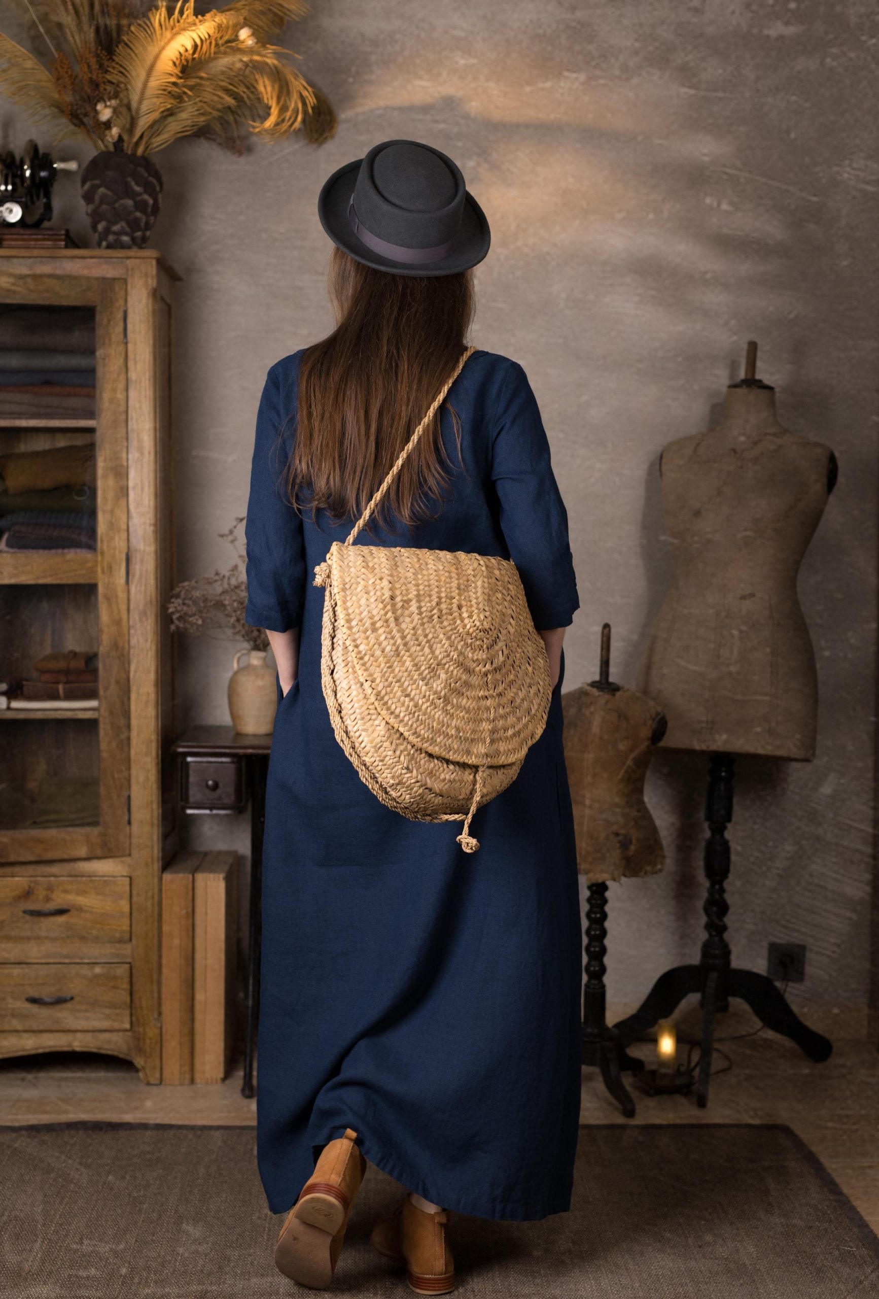 A flowing maxi linen summer kaftan dress with 3/4 sleeves and pockets, handmade for thoughtful women who love loose boho comfort and simple everyday elegance.