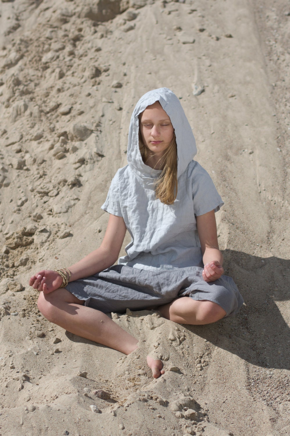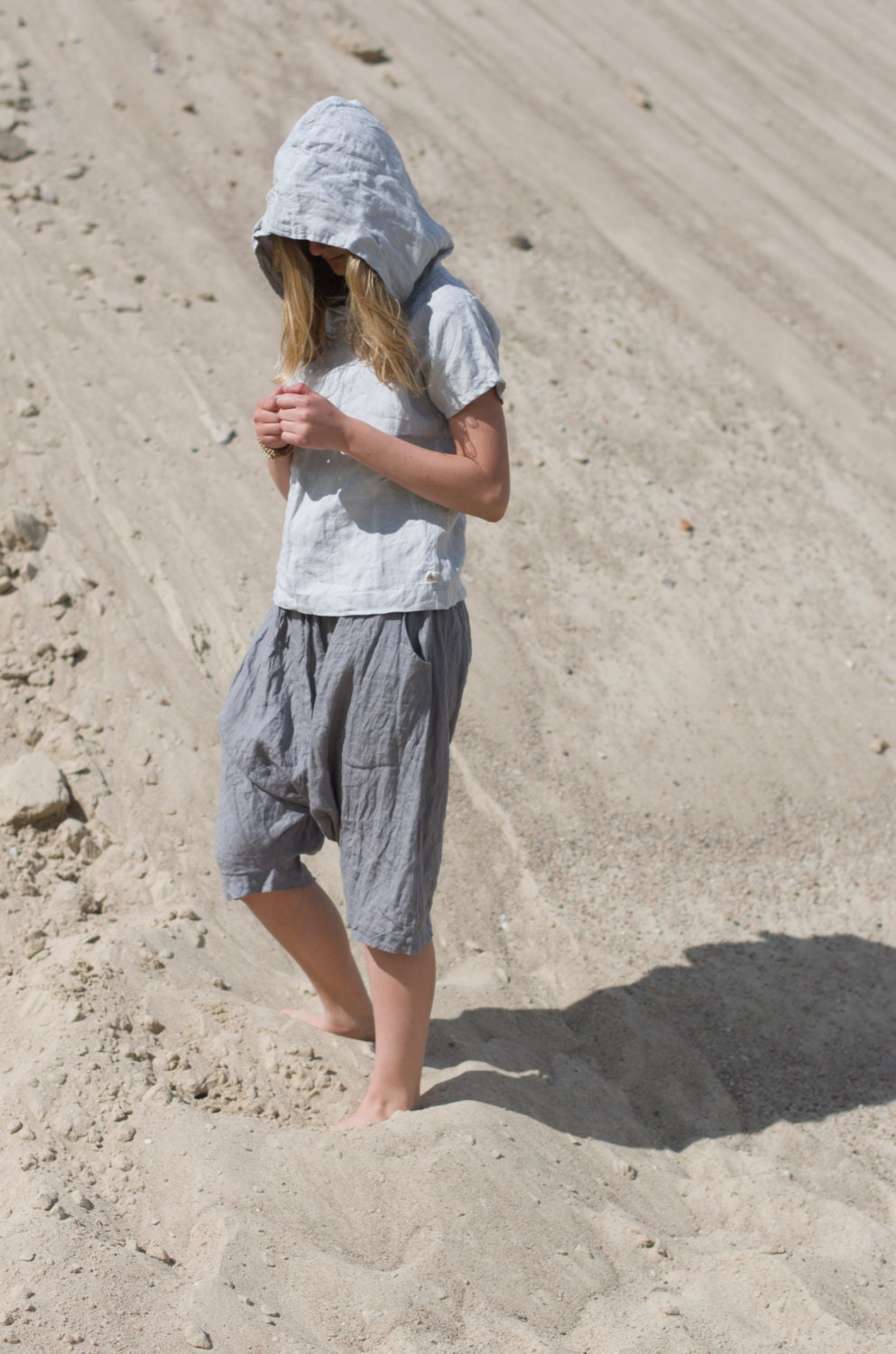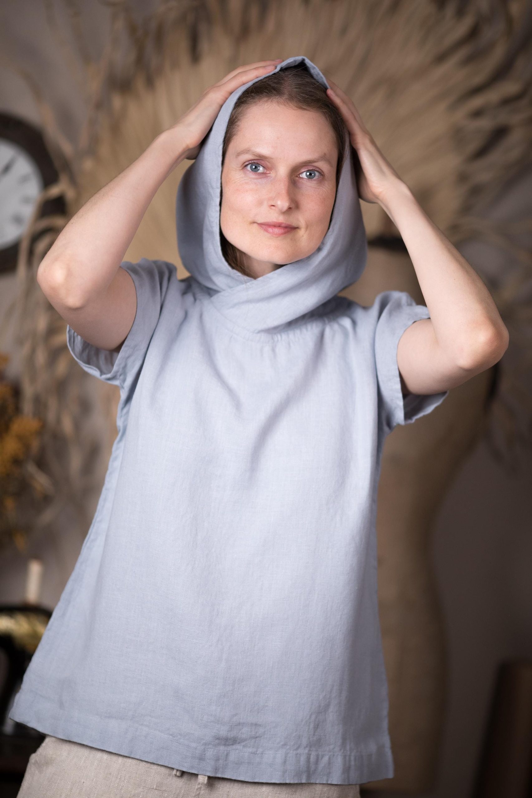 I love this top! Egle makes such beautiful clothing. 🥰 I have several of these tops, I love how they're not a typical tshirt short sleeves and the hood just adds a certain flare to it. Egle is always kind and most helpful when I have questions and concerns. I highly recommend her and her shop 💙 if you like the pants, they are also made by Egle, the WIND. 😉