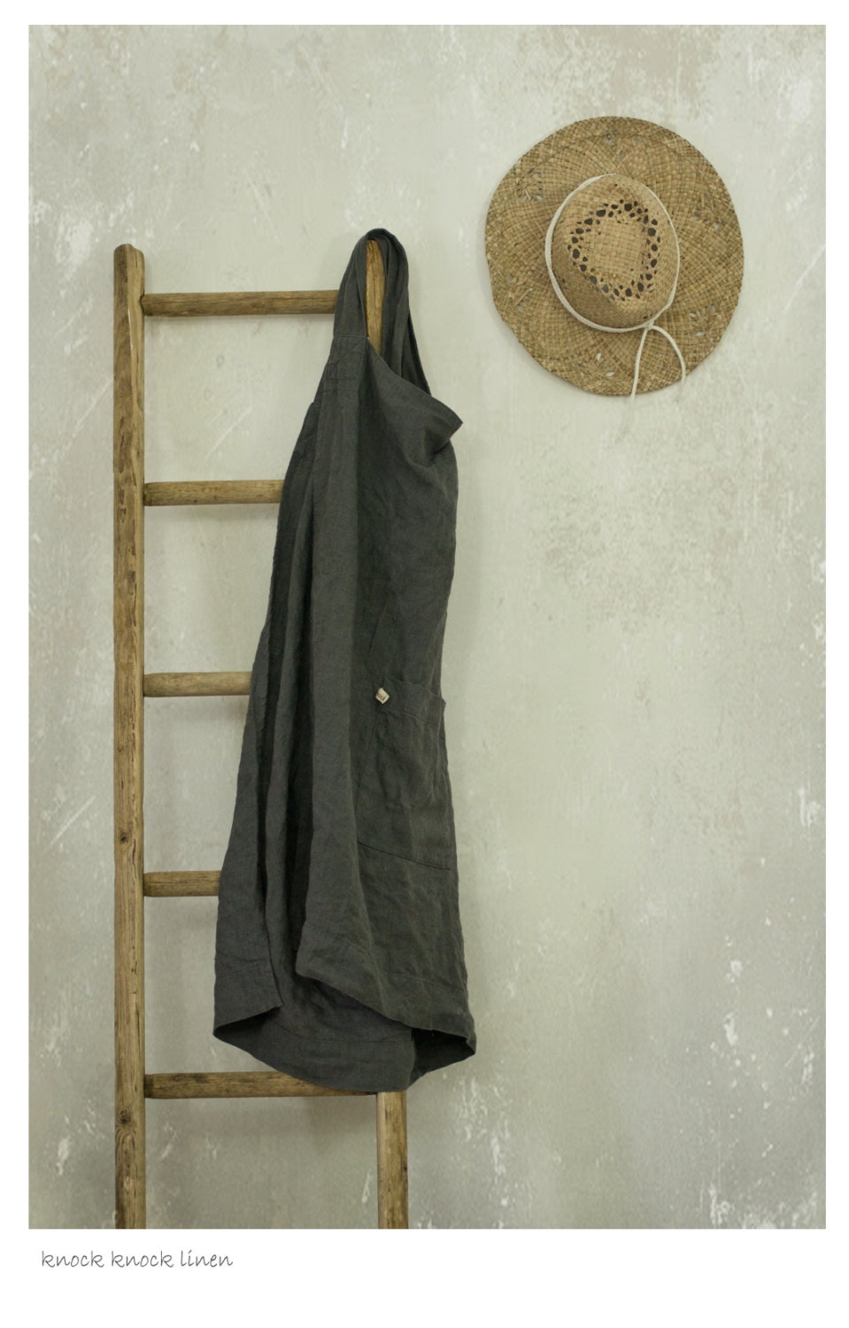 A very comfortable linen pinafore, simple and stylish apron for everyday wear with two large patch pockets.