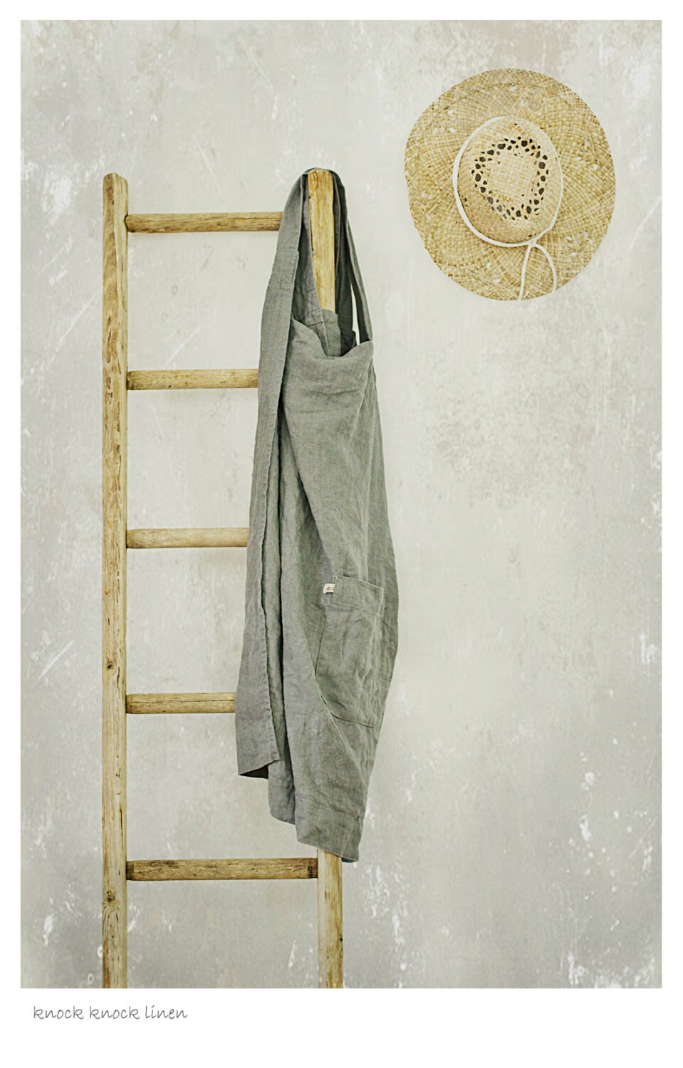 A very comfortable linen pinafore, simple and stylish apron for everyday wear with two large patch pockets.