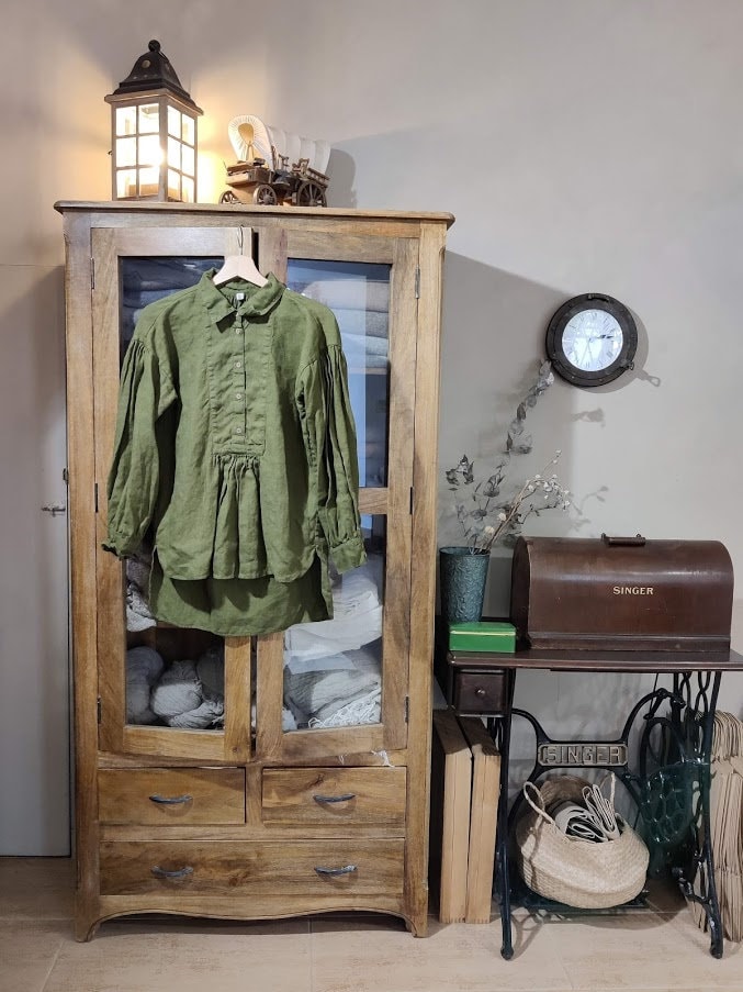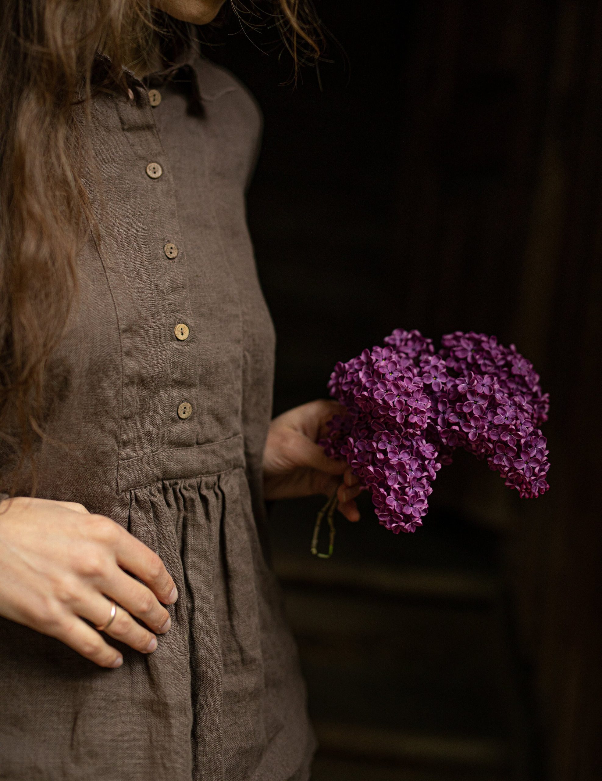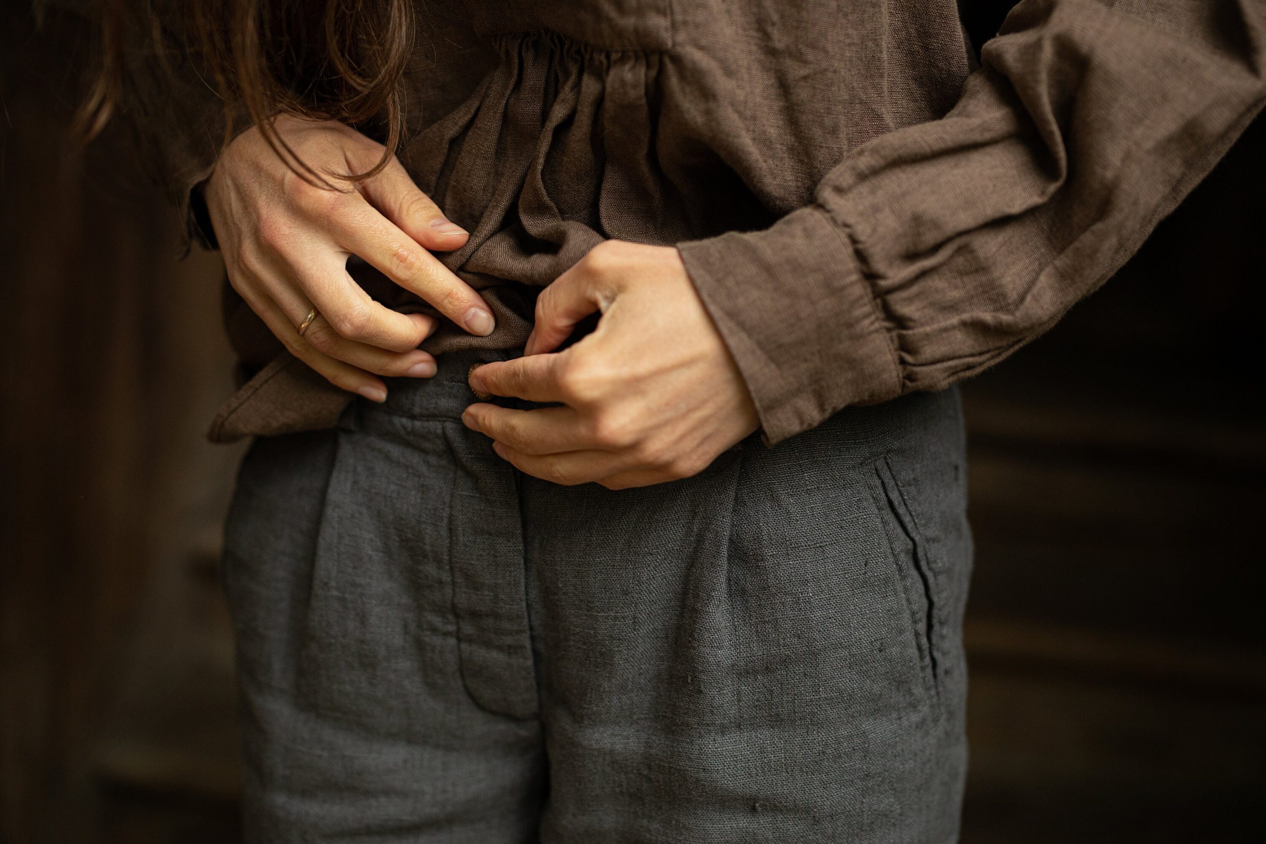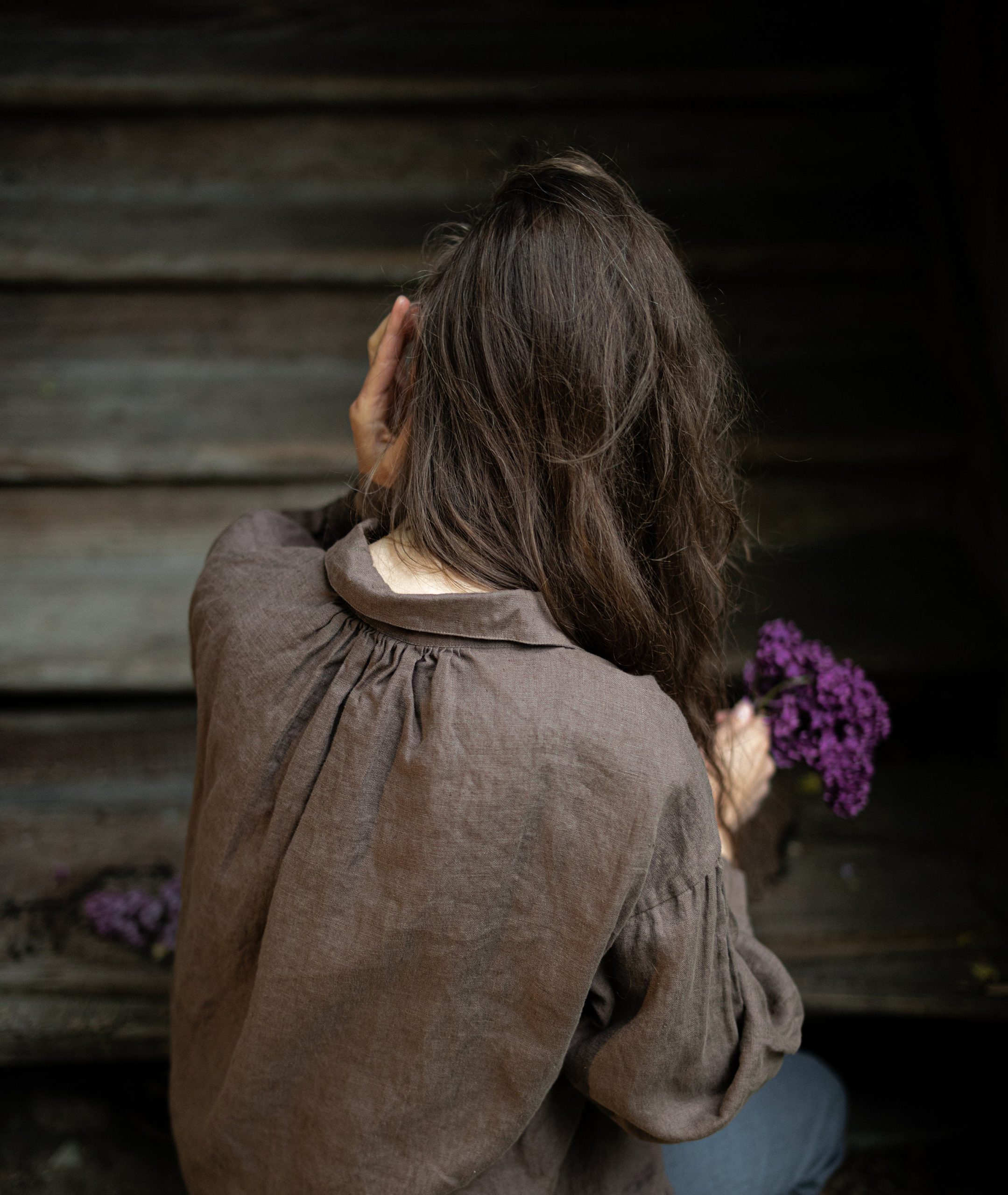 Linen shirt ARTISAN, a sartorial homage to the 19th century. This loose-fitting linen shirt encapsulates the essence of an antique French country charm. Featuring a distinctive drop shoulder line, gathered sleeve head, buttoned cuffs, and a carefully gathered yoke and front placket. It can serve as a practical coverall for a potter or artist, or simply add a touch of historic chic to your everyday wardrobe.