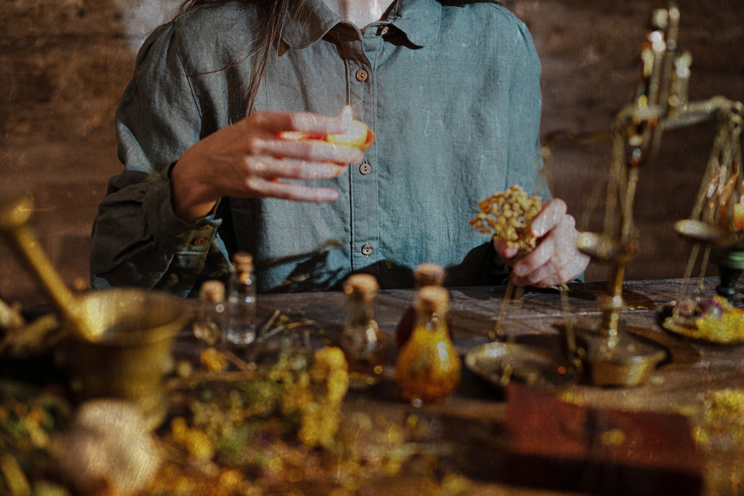 Loose linen summer blouse in soft prewashed flax—Victorian-inspired button-up top with gathered sleeves. Breathable, lightweight, artisan-crafted.