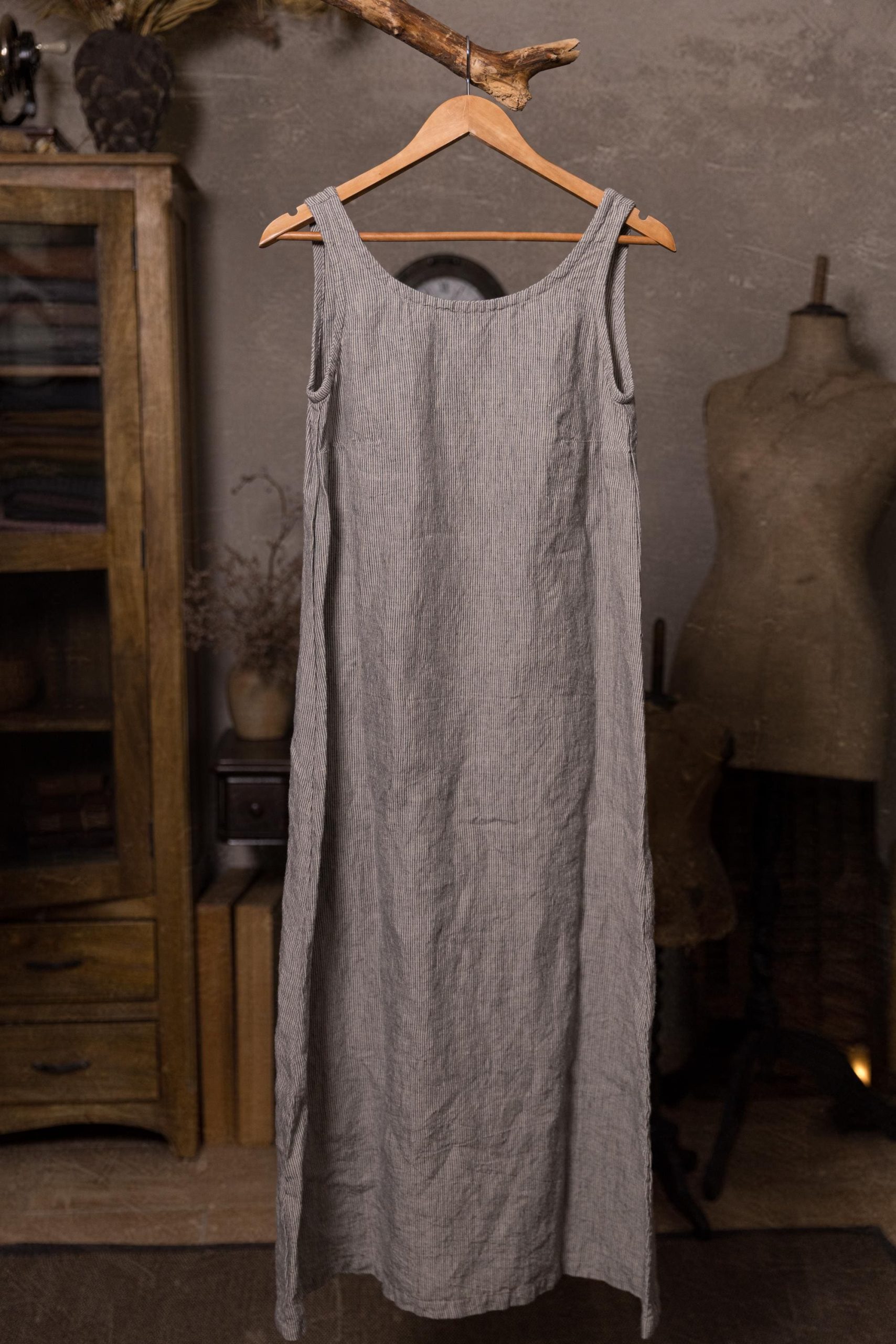 Sleeveless linen dress MIMOSA features a lower back and side seam pockets. It can be made in a custom length.