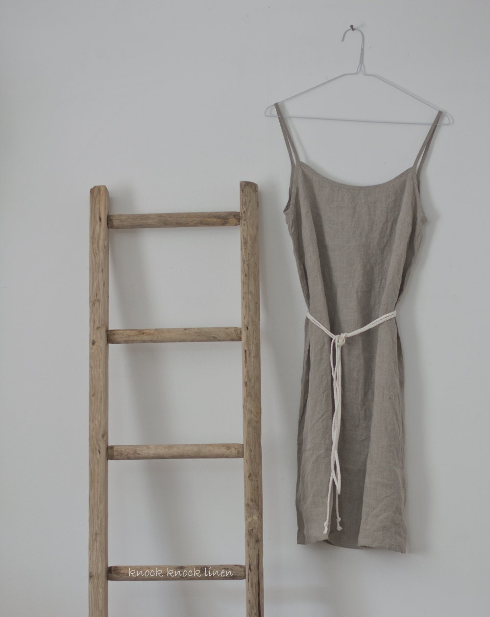 The slip dress is made of high-quality linen fabric. A simple loose knee-length dress is so comfortable and versatile. It can be worn as a simple summer dress or as a sleep dress. You can wear it as it is, or create a boho style using accessories and a straw bag.