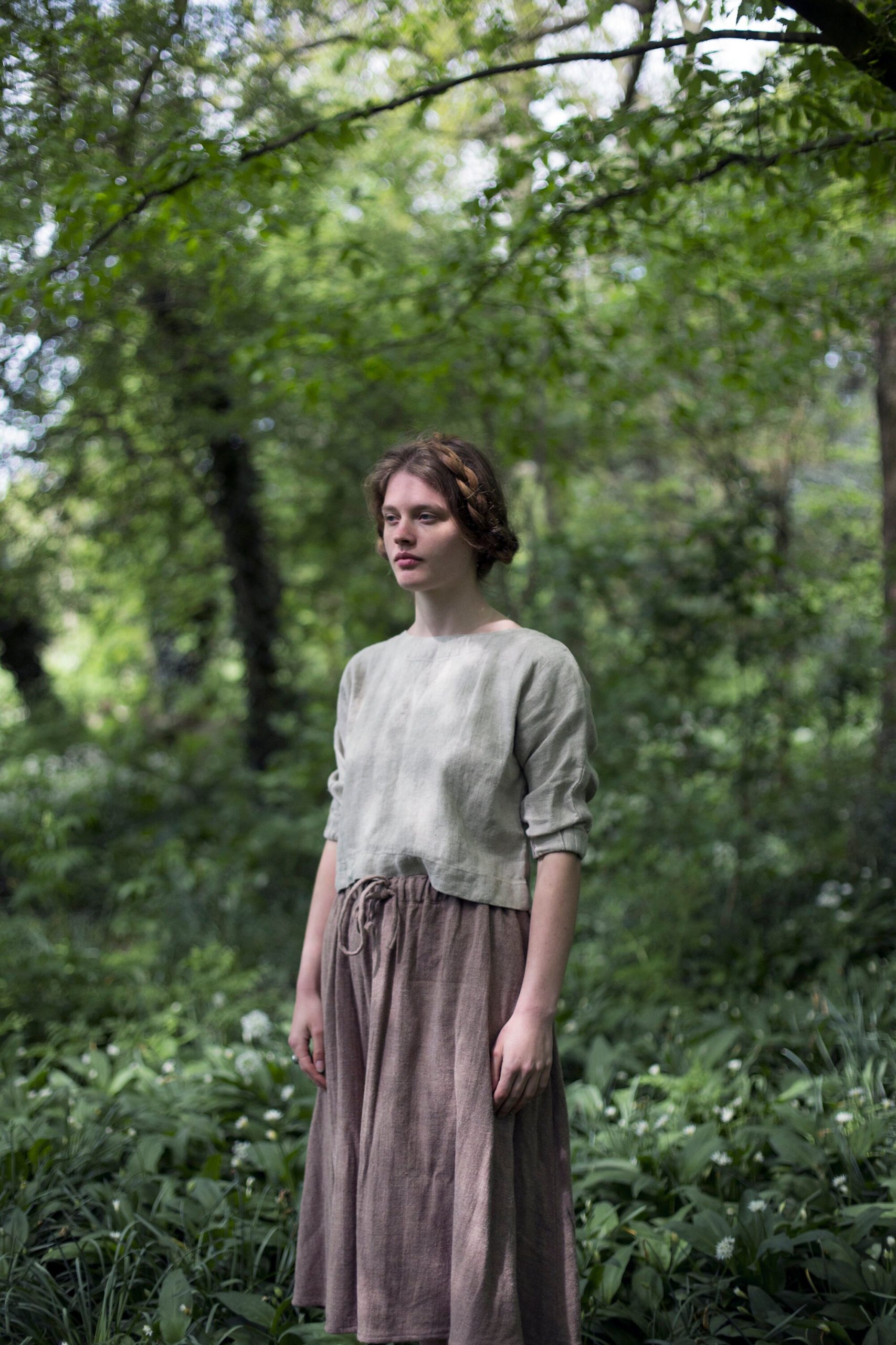 The Moon top is made of high-quality linen fabric. A simple loose linen blouse is so comfortable and versatile as it has kimono style sleeves with an elastic cuff, boat neck. It can be worn as a simple summer top or create a boho style using accessories and a straw bag.