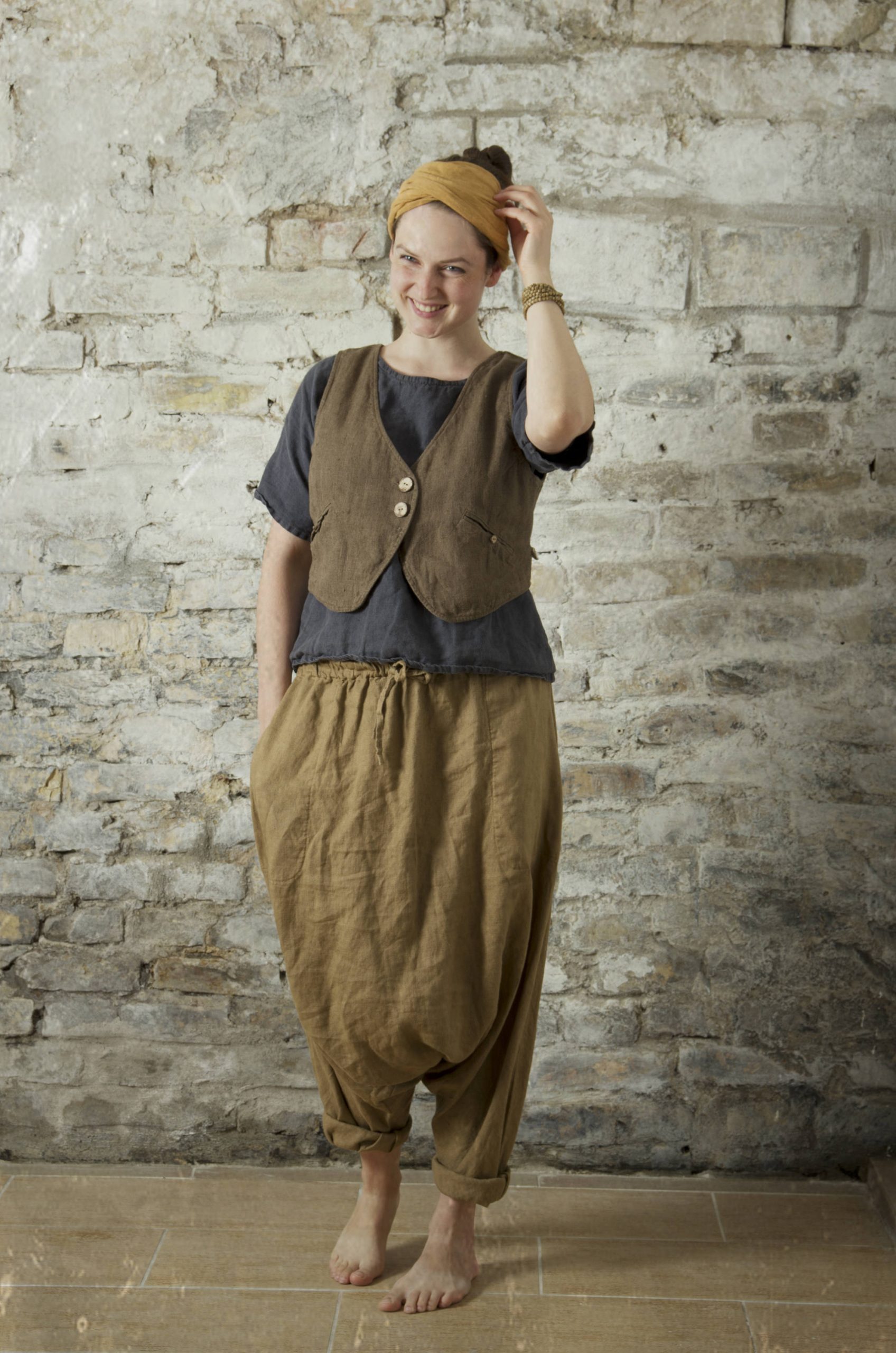 Boho Linen Vest with Pockets – Sleeveless Women’s Waistcoat, Handmade from 100% Linen