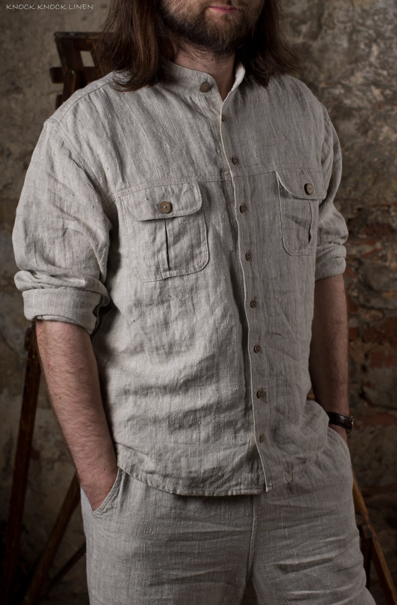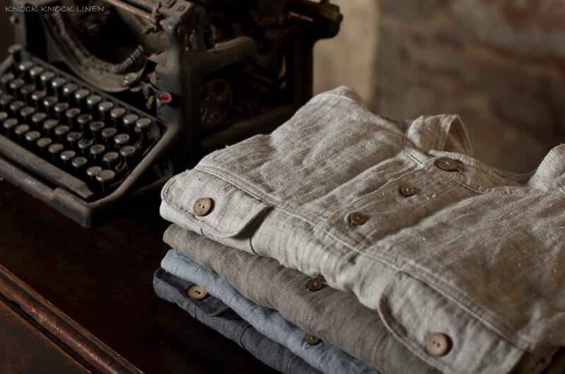 A timeless men’s linen workwear shirt – vintage inspired. Each shirt is sewn from 100% OEKO-TEX® certified linen, featuring a straight, relaxed silhouette, two front flap pockets, and natural coconut buttons.