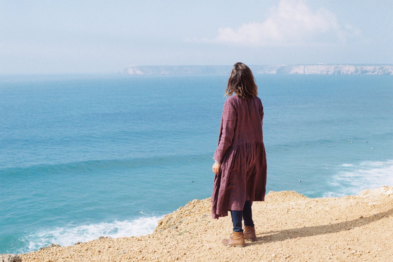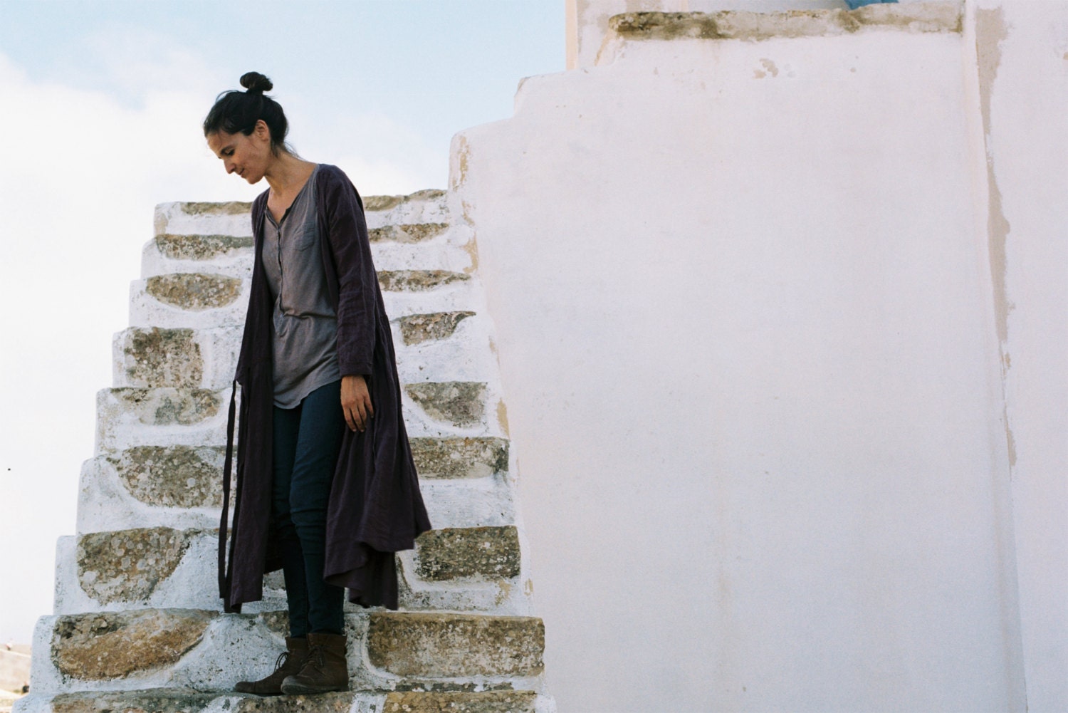 A loose linen wrap dress SEPTEMBER is a very comfortable yet feminine summer dress. It features a low waistline, long, loose sleeves, a gathered skirt, and side seam pockets. You can wear it as a dress or as a duster coat.