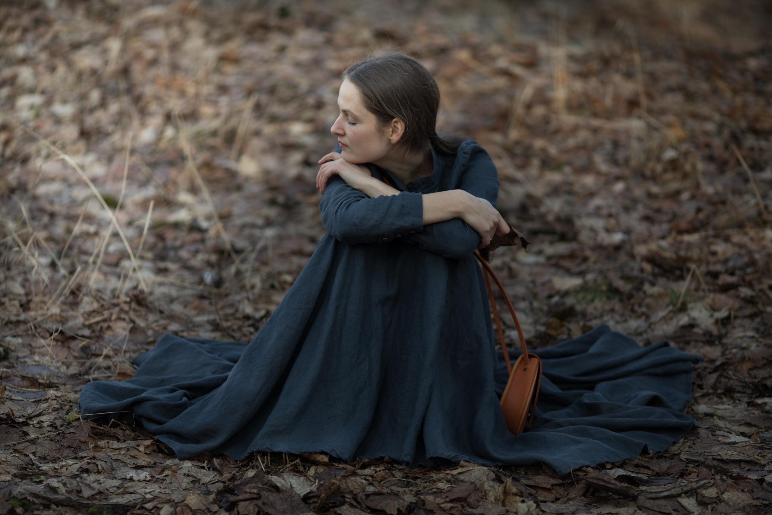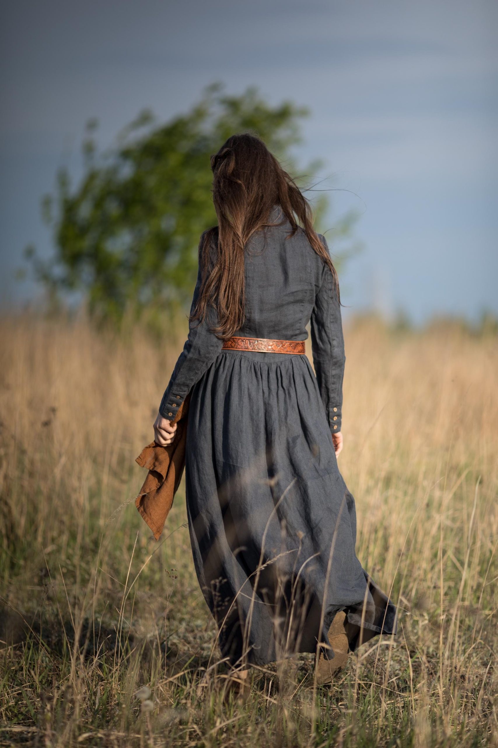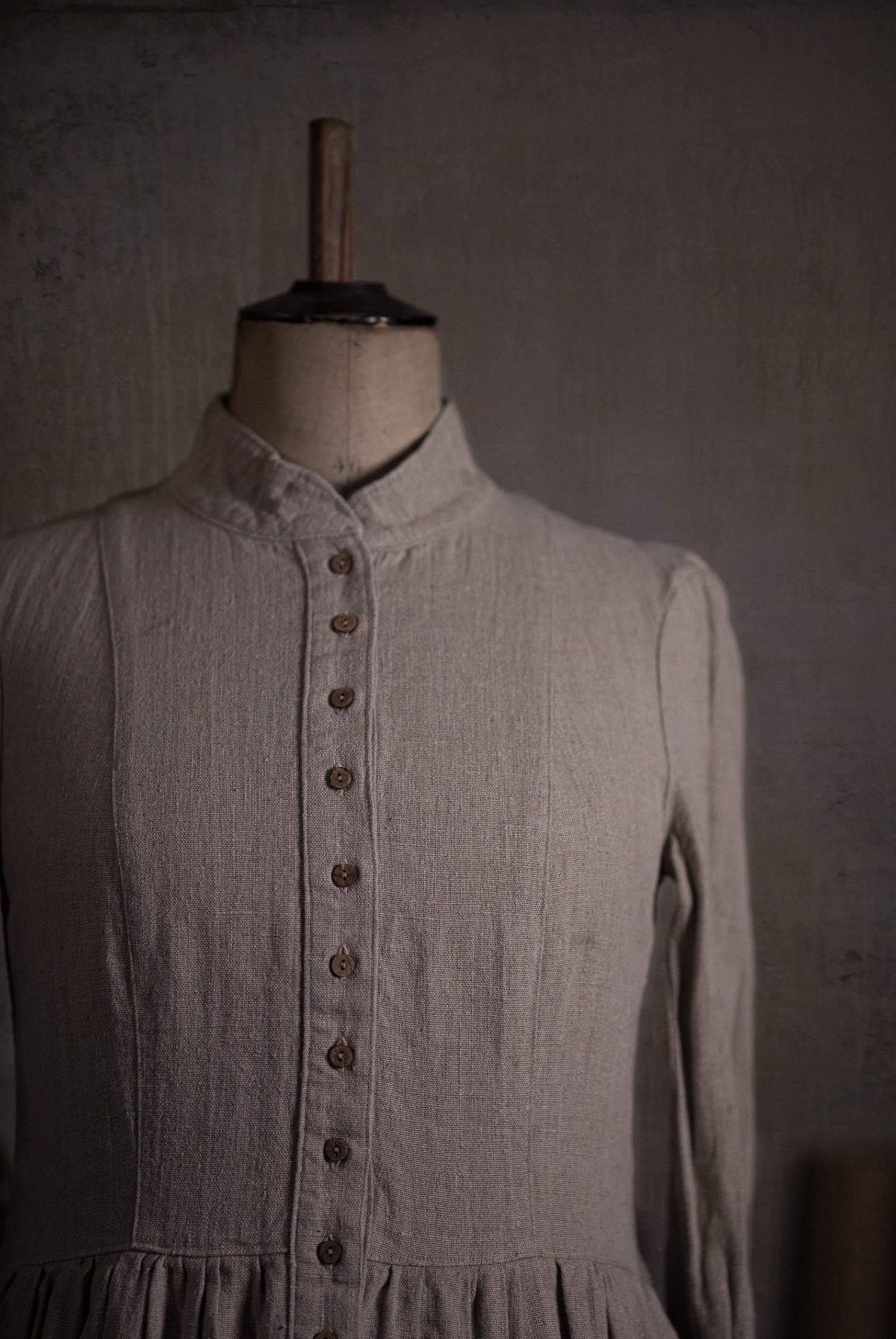 It looks like an antique linen dress, like a piece of treasure from a historical museum. You can order the dress in heavyweight linen for winter or in medium and lightweight for warm weather.