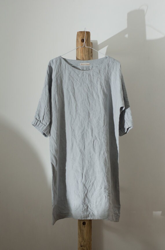 The Moon dress is made of pure linen fabric. A simple loose linen dress is so comfortable and versatile as it has kimono style sleeves with an elastic cuff, boat neck, pocketless. It can be worn as a simple summer dress or layered in winter. You can wear it as it is, or create a boho style using accessories and a straw bag.