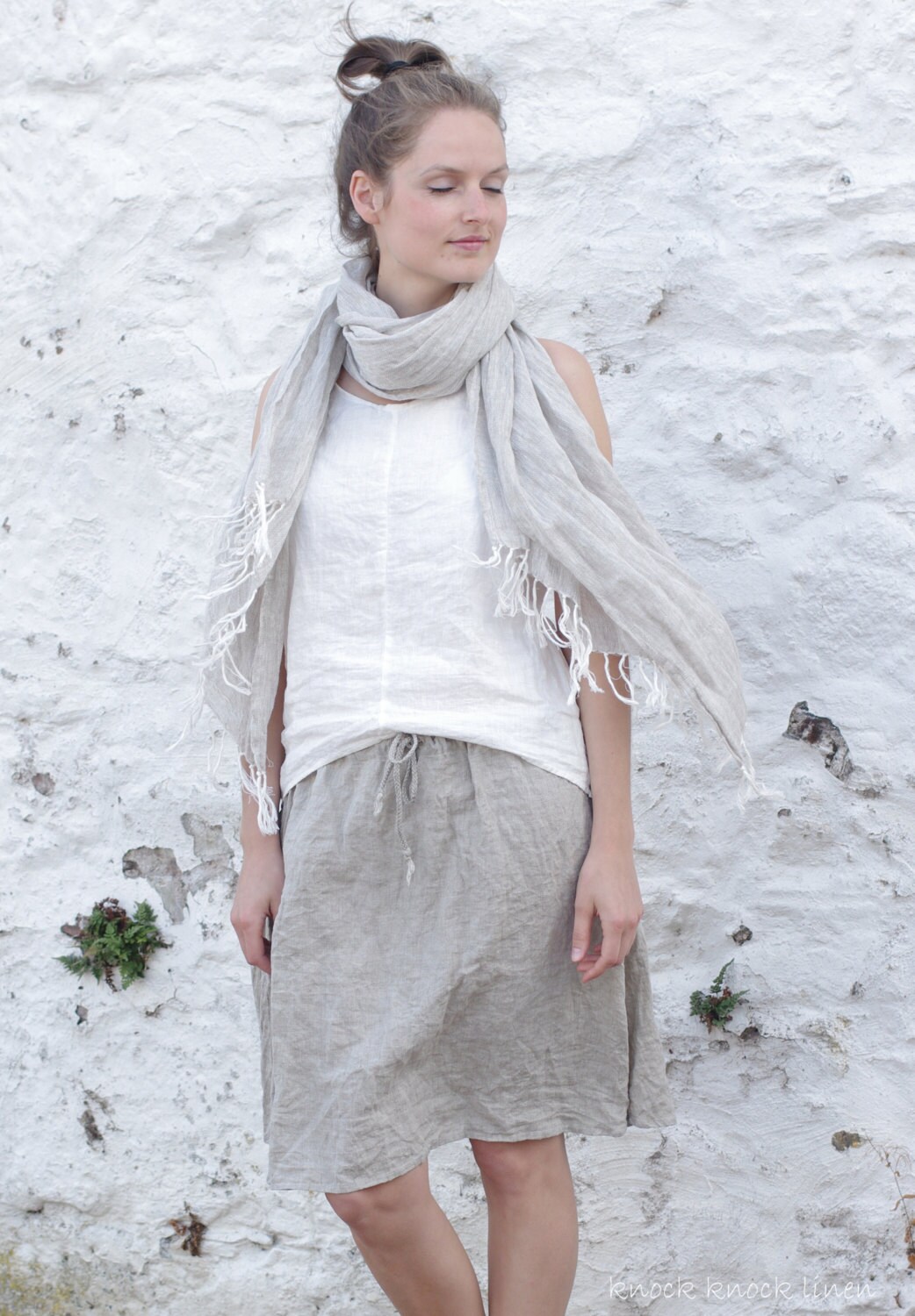 I am very happy and amazed with my first purchase from KnockKnockLinen! Egle is very nice and helped me a lot in the ordering process. All the pieces I ordered were made for my size and fit perfectly. They are SO well made, with so much care and attention! The linen feeling on the skin is wonderful. I have this skirt in lightweight natural linen and it feels very comfy and fresh.