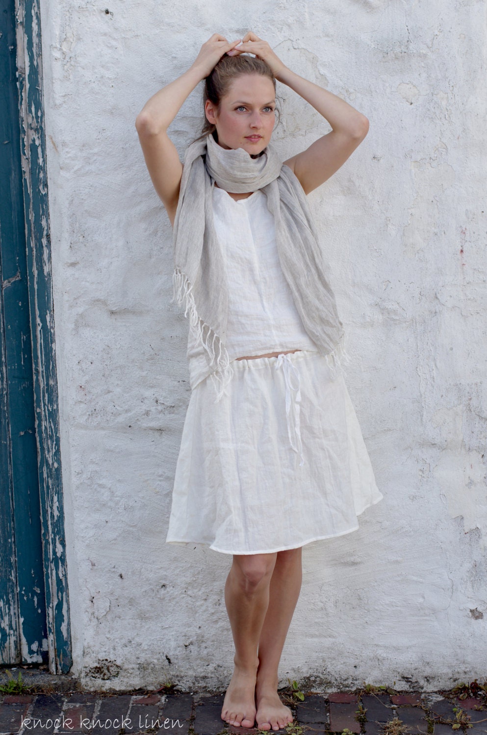 Der Rock war auch Gegenstand meiner 2. Bestellung, die deutlich vor der Zeit in weniger als 3 Wochen bei mir ankam. Entsprechend Egles Rat und der Größentabelle habe ich den Rock in Größe S bestellt (70 cm Taille und 94 cm Hüfte), wobei aufgrund des flexiblen Kordelzugs wahrscheinlich auch XS noch gepasst hätte. Der schwere Leinenstoff in off white ist kaum durchsichtig und fällt durch die Schwere besonders schön. Auch hier war Egles Einschätzung zutreffend. Die Qualität und Verarbeitung sind herausragend und heben sich deutlich von anderen Shops ab.