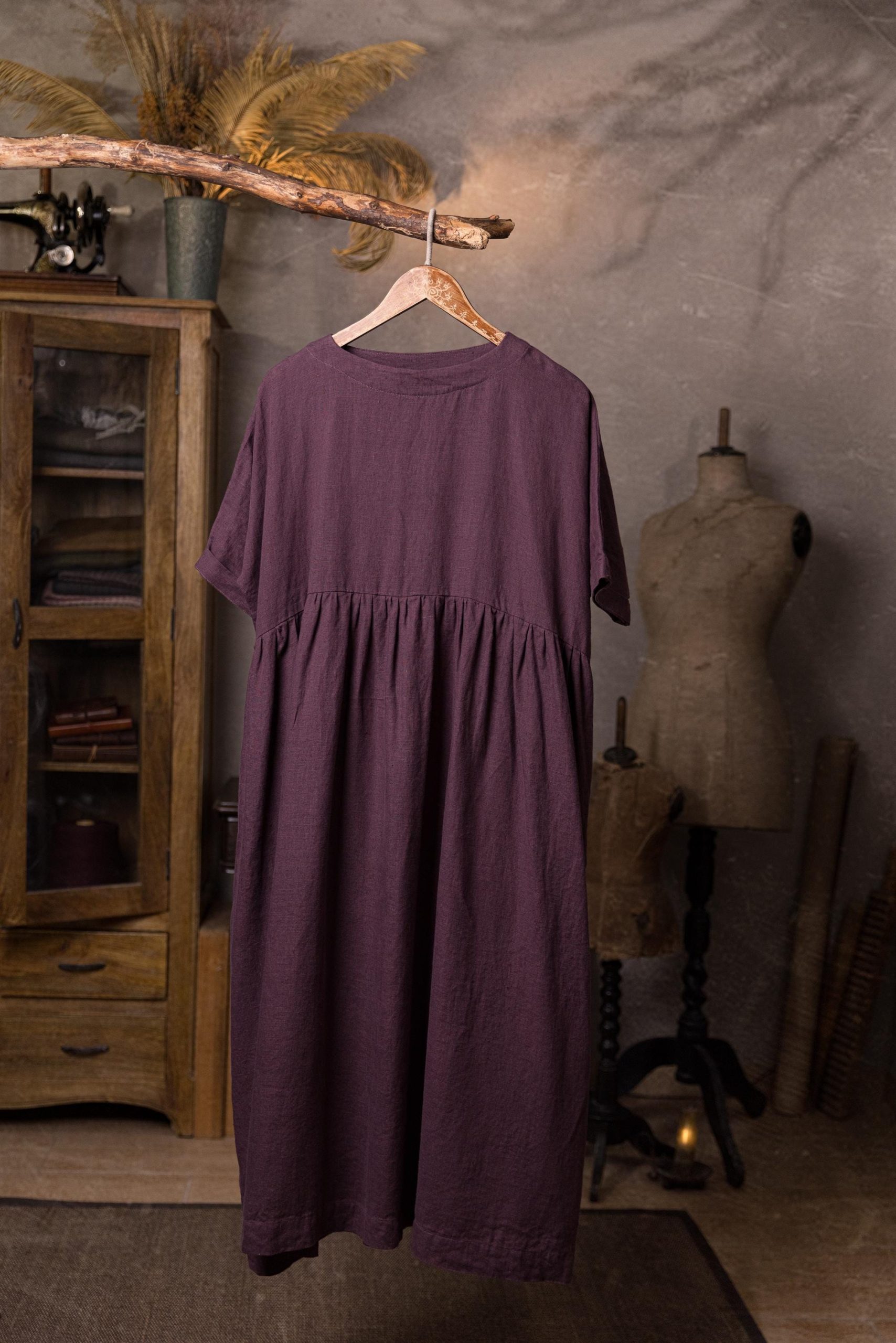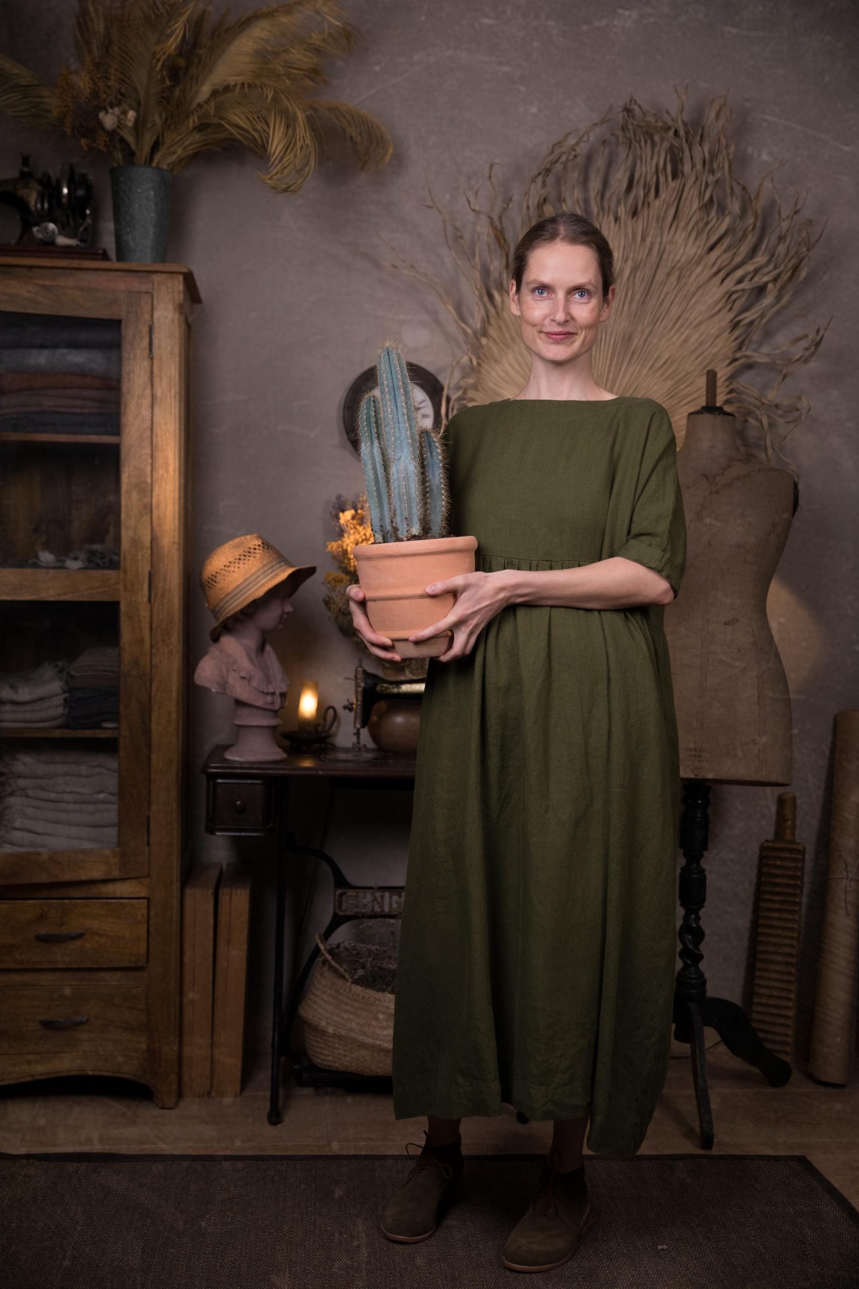 An oversized linen dress with short sleeves, a high waist, and a softly gathered skirt – designed for women who cherish freedom and authenticity. It lives with you through the seasons, gently adapting to your body as it changes. With every wear, it becomes a part of your rhythm – comforting and always feeling like home.