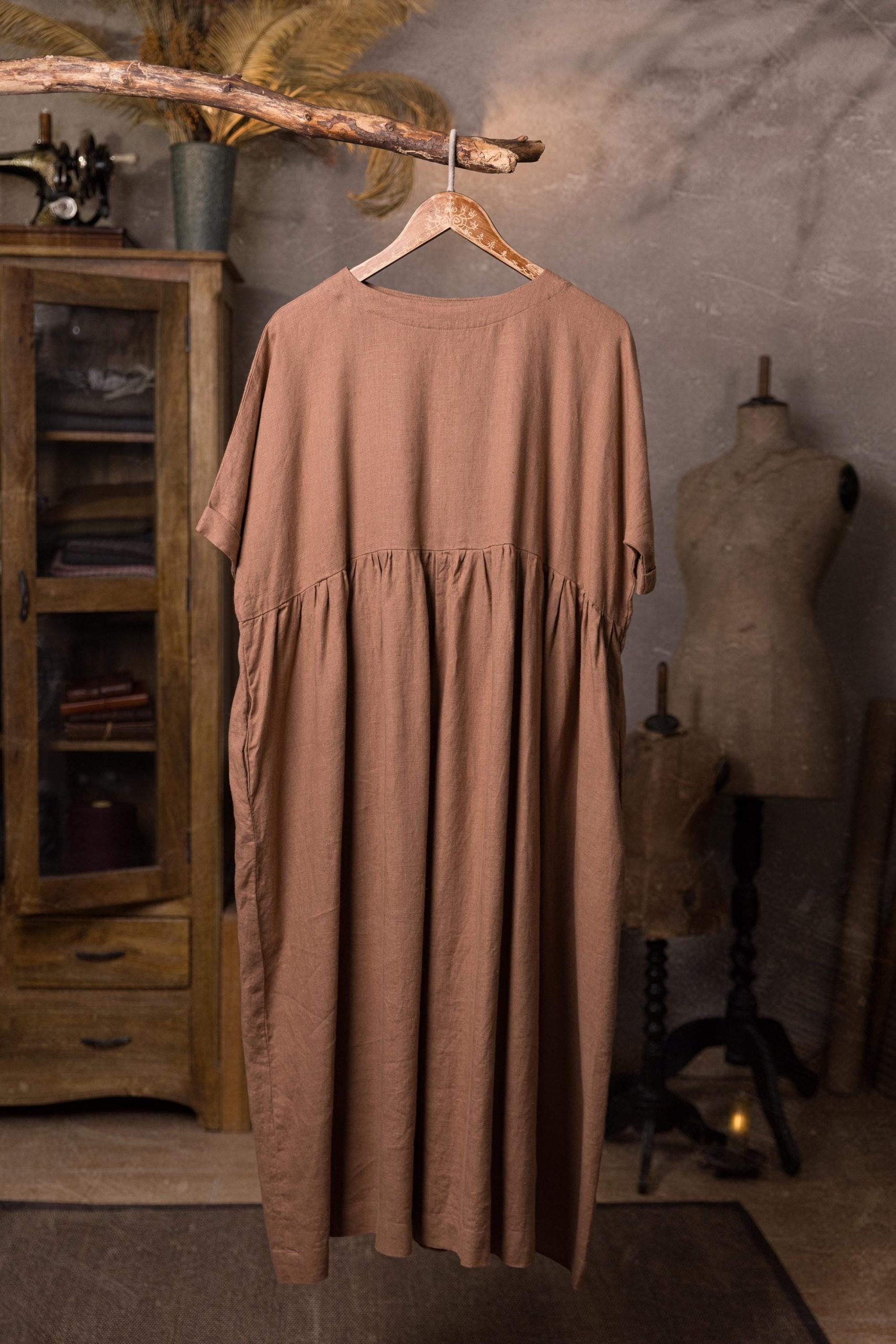 An oversized linen dress with short sleeves, a high waist, and a softly gathered skirt – designed for women who cherish freedom and authenticity. It lives with you through the seasons, gently adapting to your body as it changes. With every wear, it becomes a part of your rhythm – comforting and always feeling like home.