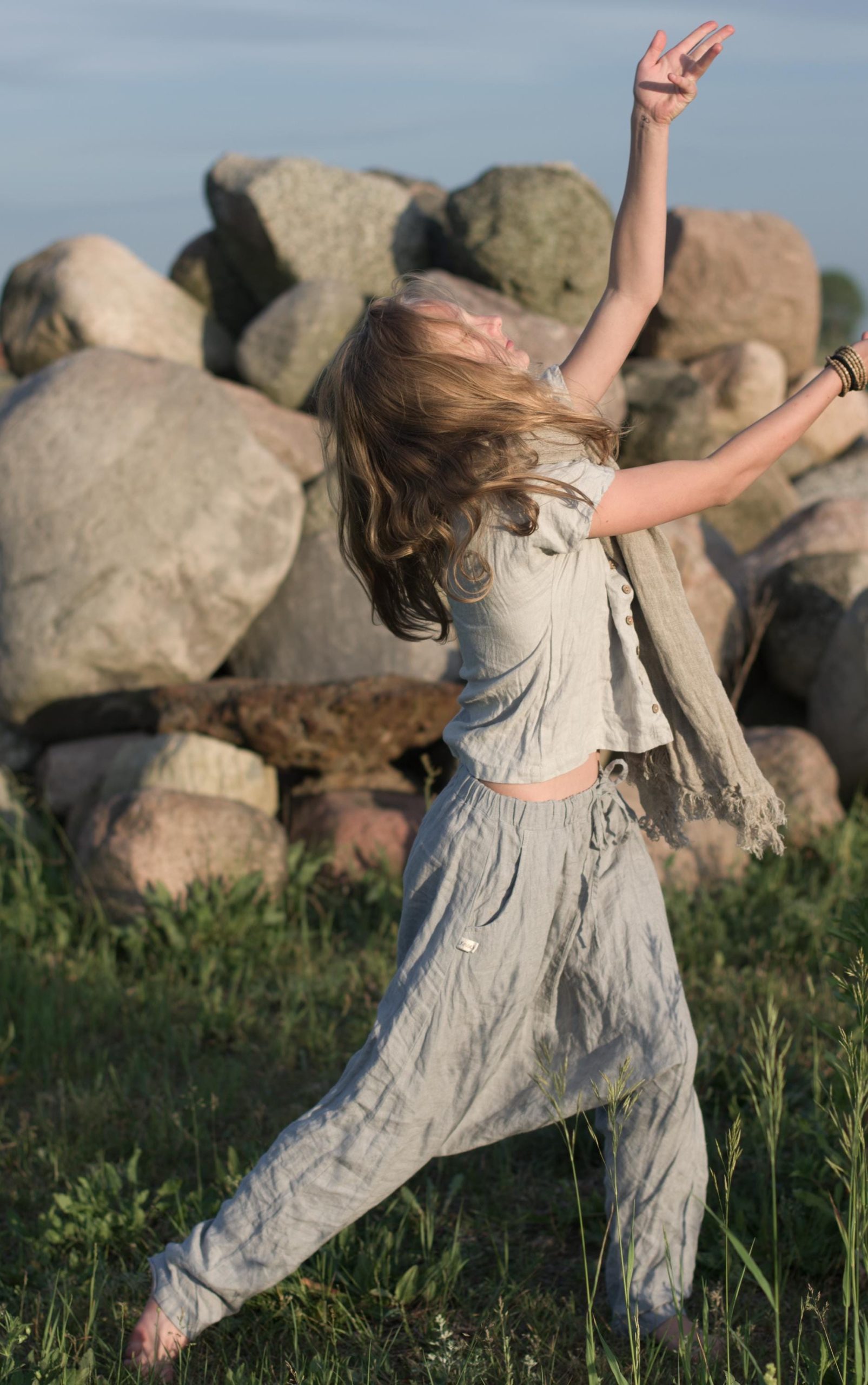 Opening a package from KnockKnock Linen is a special event! First, you notice the care that was taken, with an artistic handmade, hand-printed notecard, and everything wrapped in eco-friendly materials — brown paper, string, and homemade linen bags. Then, you notice the divine sweet fragrance of the linen as you unfold the beautiful items. Finally, the exquisite craftsmanship of the items themselves is revealed! This blouse in the color Cinnamon is so beautiful, and fits as if created by a personal tailor. The wooden buttons give it a rustic, yet elegant look! Thank you, Eglé! 💗