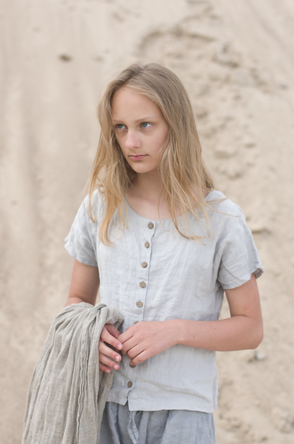 Wow such a beautiful top! I love it so much. Fit is perfect, not tight but not loose, it’s just right. Fabric is soft for linen and has a beautiful worn quality to it.
