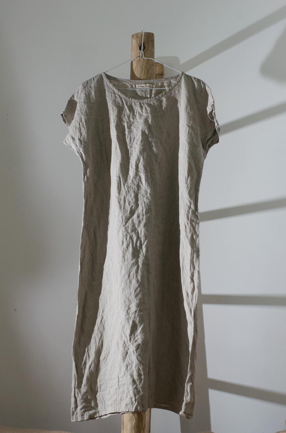 This simple, unassuming dress is literally the PERFECT garment. I have it in 2 colors now and am so tempted to buy more. You can wear it to dinner, to the office, to clean the house, to work in the garden, or you can sleep in it. You can wear it with heels, combat boots, flip flops, or barefoot. This was part of my second order, and once again the quality of all pieces is excellent, they smell wonderful, and have clearly been packaged with care. A surprise gift of two hand towels was included to make up for a short delay, and all came in a nice linen drawstring bag. I give 6 stars!