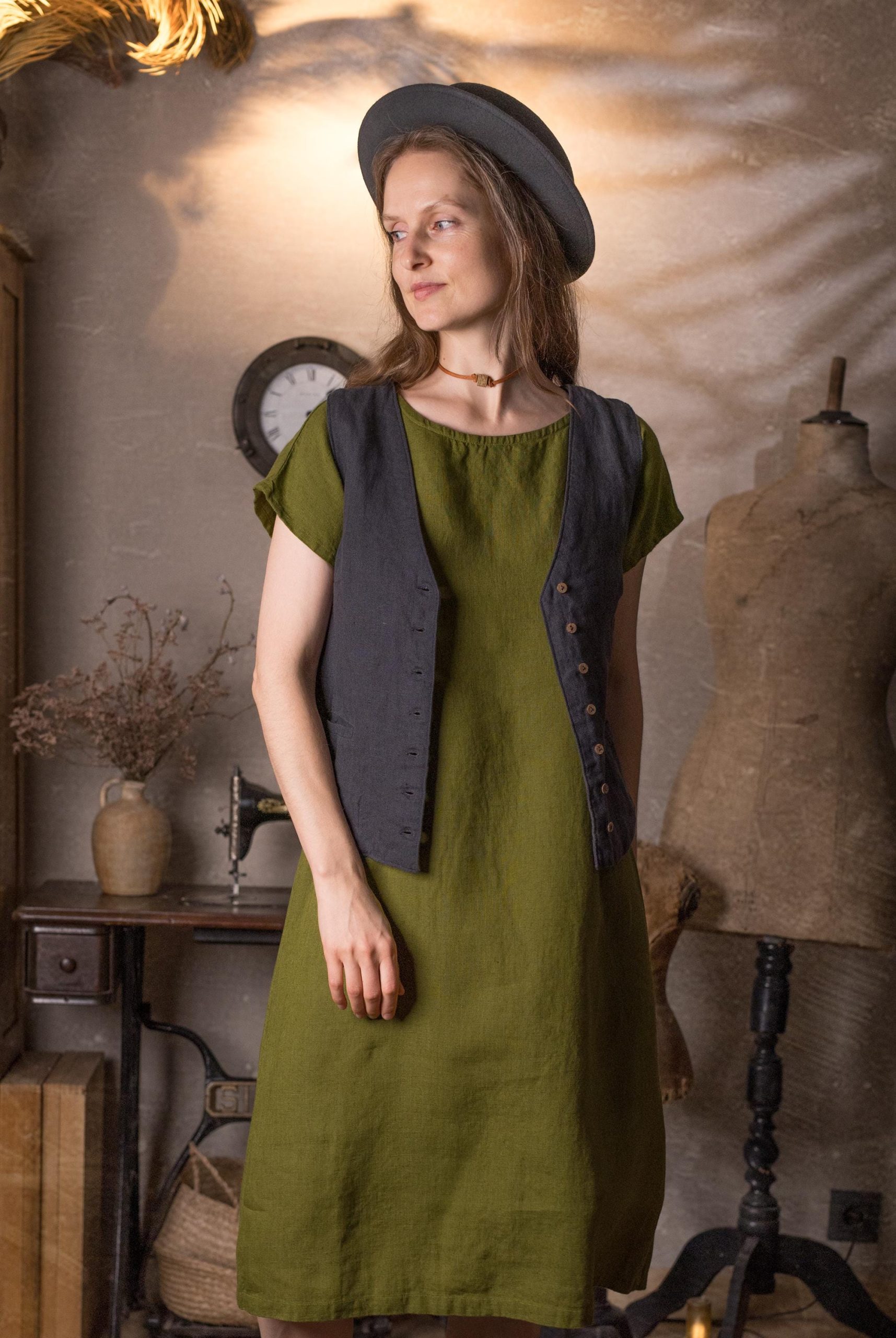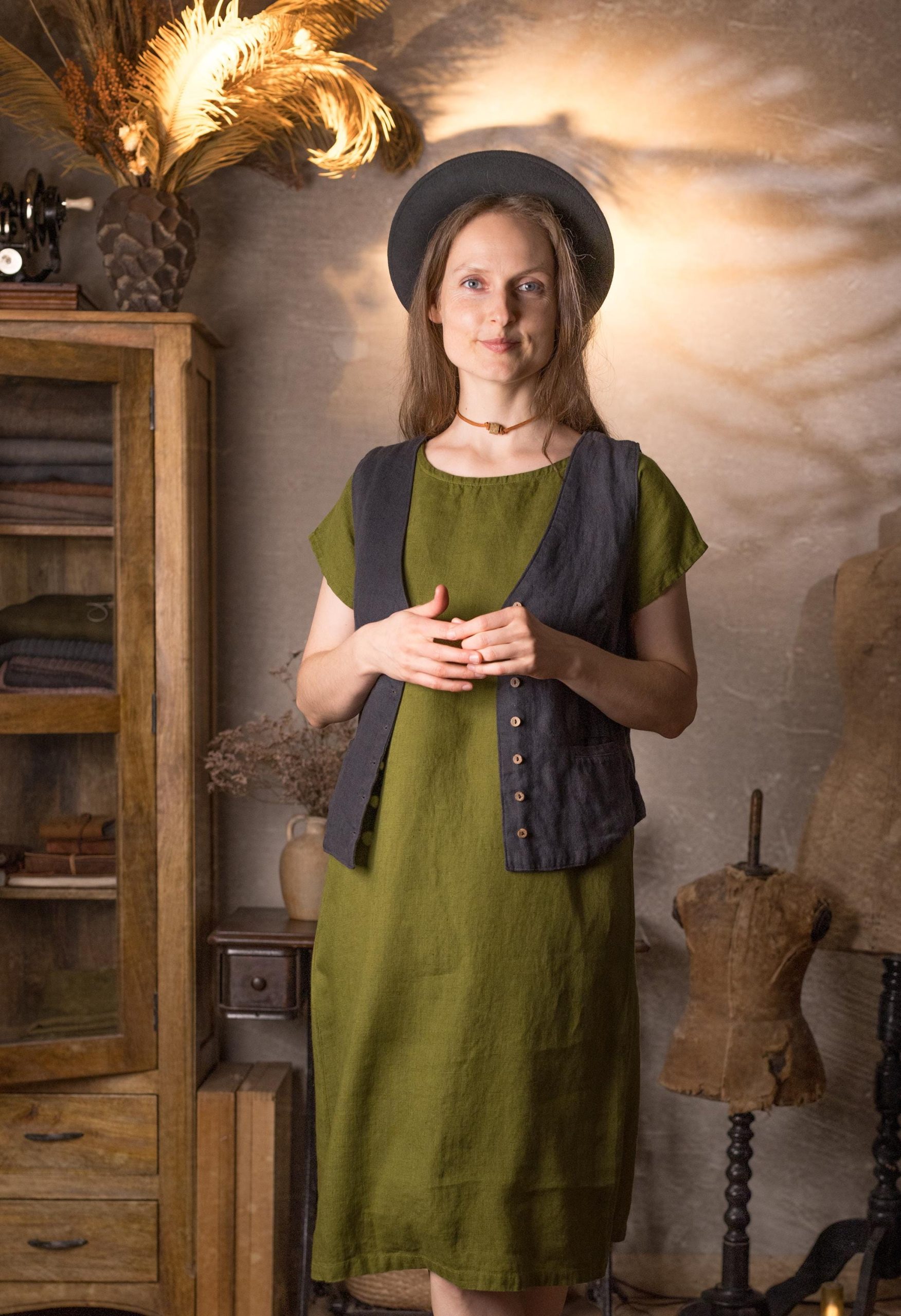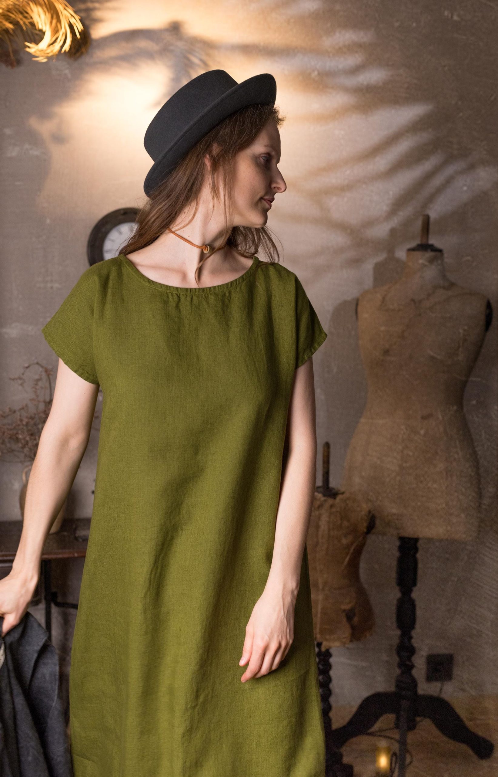 I love these dresses because they are so simple, classic, and versatile. Dress them up or down with accessories. You can wear them out to a nice dinner or sleep in them. In Black especially, it’s a quintessential foundation piece for any wardrobe. I bought two of these dresses a couple years ago and just returned for two more. I’ve purchased linen items from many Etsy shops and this shop consistently delivers the highest quality items. One thing to consider with hem length: soft un-ironed linen by midday appears a bit shorter (due to normal linen wrinkling) than the same dress in the morning (especially if ironed) so I would be careful not to order too short if it matters to you. See how it wears then hem it later if needed.