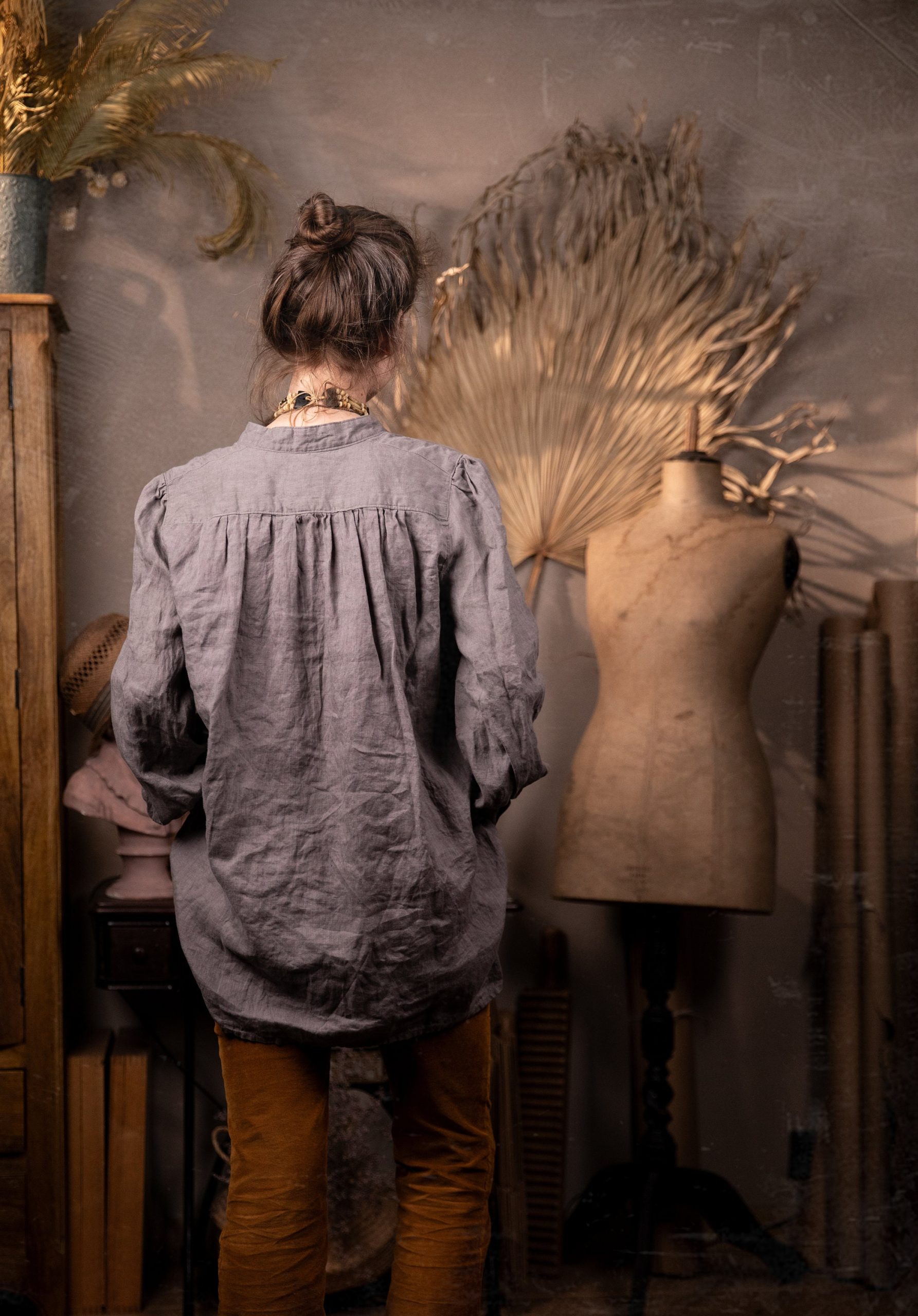Linen shirt SULLY, Victorian-inspired linen peasant shirt — a perfect blend of historical style and modern comfort. Crafted from 100% softened linen, this lightweight, breathable blouse is designed for relaxed summer days, steampunk styling, or timeless bohemian looks.