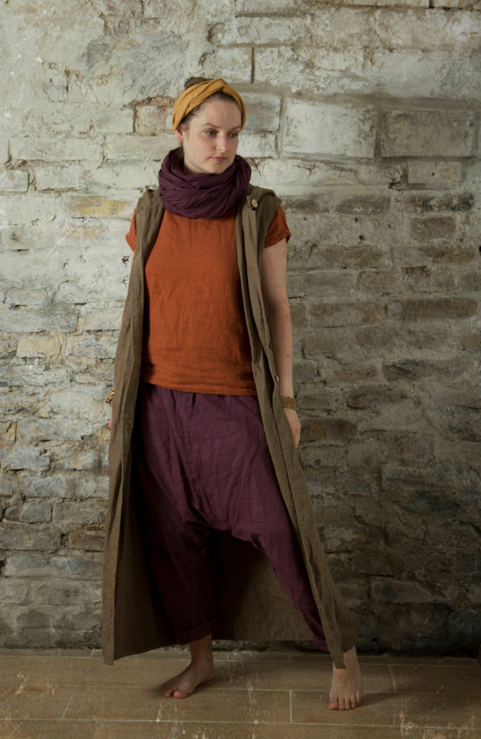 Soft, breathable linen harem pants with a tapered leg, deep pockets, and adjustable waist – ideal for yoga, lounging, or slow living in comfort.